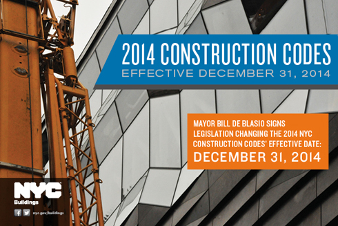 The 2014 NYC Construction Codes' effective date is now December 31, 2014.