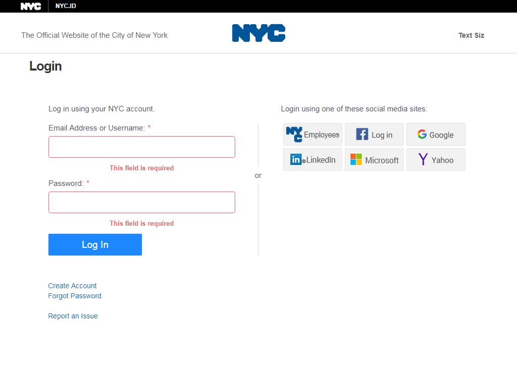 ! IMPORTANT: If the "target" parameter isn't specified or is invalid, NYC.ID will send the user to NYC.gov.