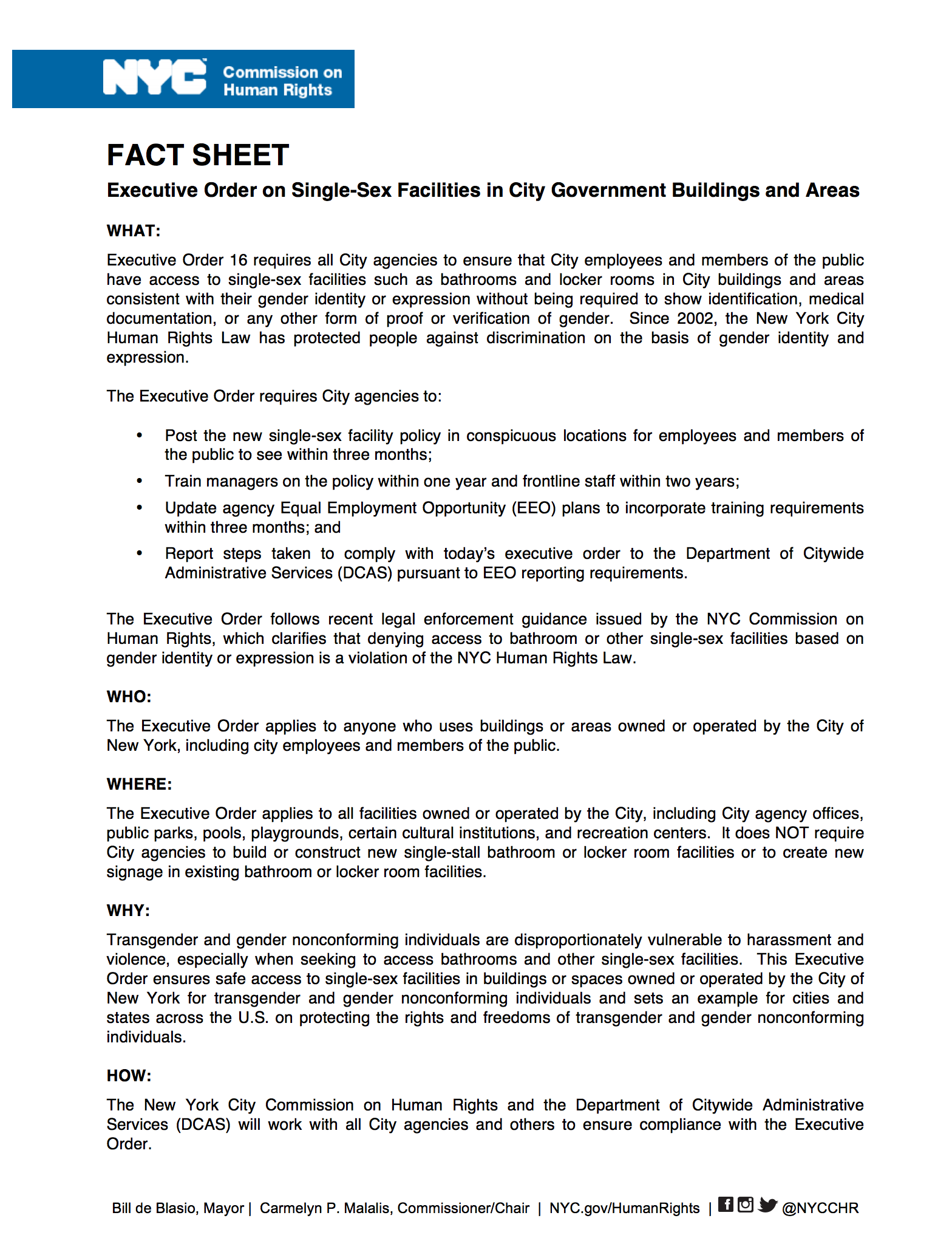 All New Yorkers deserve to have equal access to housing, employment, and public places. Our factsheets give a snapshot of rights and responsibilities under the NYC Human Rights Law.