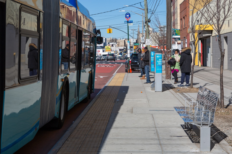 (Brooklyn, NY – February 13, 2020) NYC Department of Transportation (DOT) Commissioner Polly Trottenberg and NYC Department of Design and Construction (DDC) Commissioner Lorraine Grillo announced today that a $22.7 million project to further speed buses along Brooklyn’s Utica Avenue Select Bus Service (SBS) Route has been completed. DDC managed the project for DOT, which contributes to Mayor DeBlasio’s Better Buses Action Plan, with a goal of speeding buses by 25% and enhancing existing bus lanes throughout NYC. In addition, the project enhances pedestrian safety and infrastructure along this Vision Zero corridor in recognition that pedestrian safety and accessible bus stops help to encourage bus ridership.