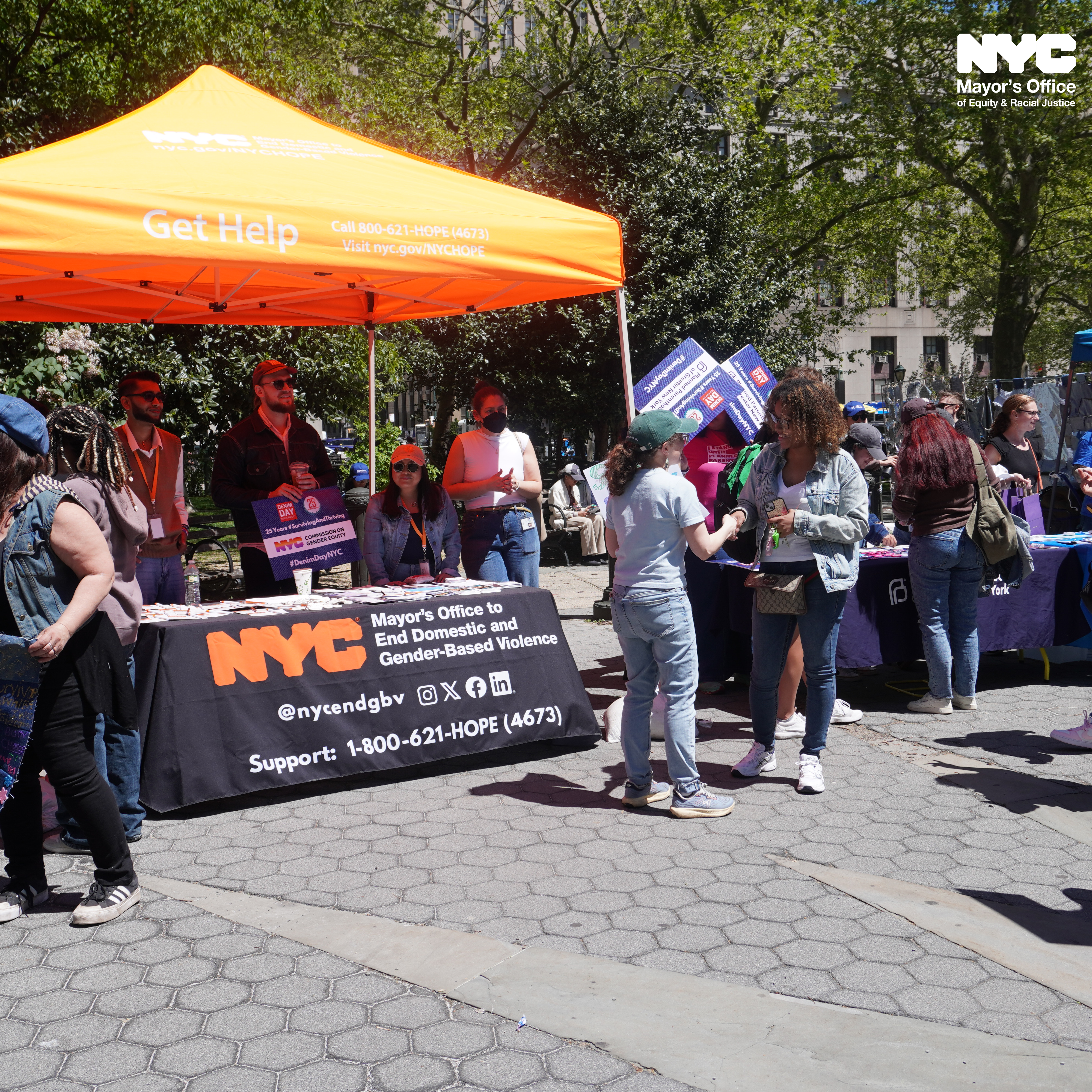 Saturday, June 24, 2023, the NYC Mayor's Office of Equity and the NYC Unity Project attended Harlem Pride. There, flyers were shared and free resources within the city that are available to the LGBTQ+ community were discussed with attendees.