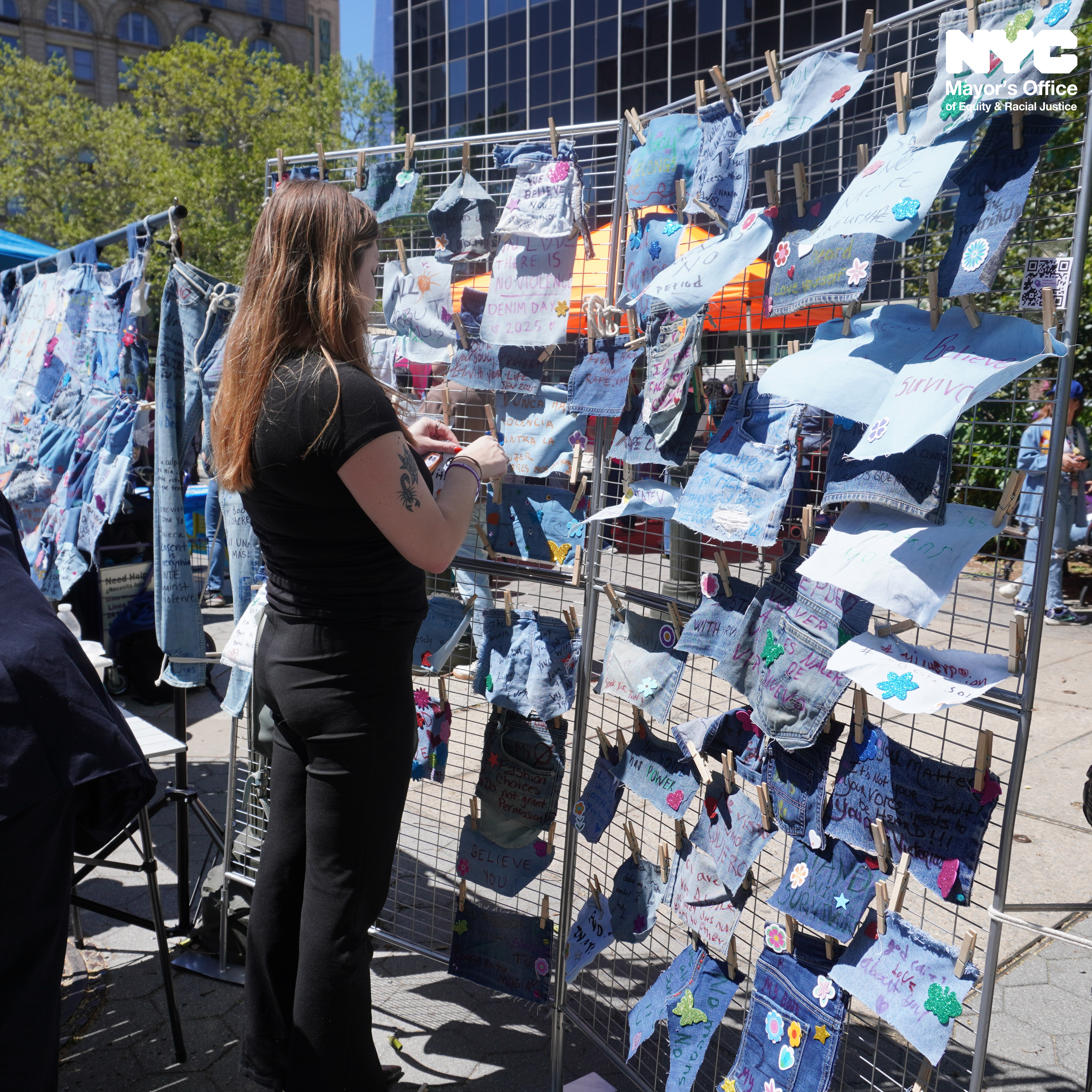 April 30, 2025, The NYC Commission on Gender Equity (GCE) joined the Mayor's Office to End Domestic and Gender-Based Violence (ENDGBV) and New Yorkers from across the city for Denim Day NYC—a powerful annual event that reinforces the message: there is never an excuse or invitation for sexual assault, harassment, or abuse. Marchers crossed the Brooklyn Bridge and gathered at Foley Square, wearing denim as a symbol of solidarity and support for survivors.