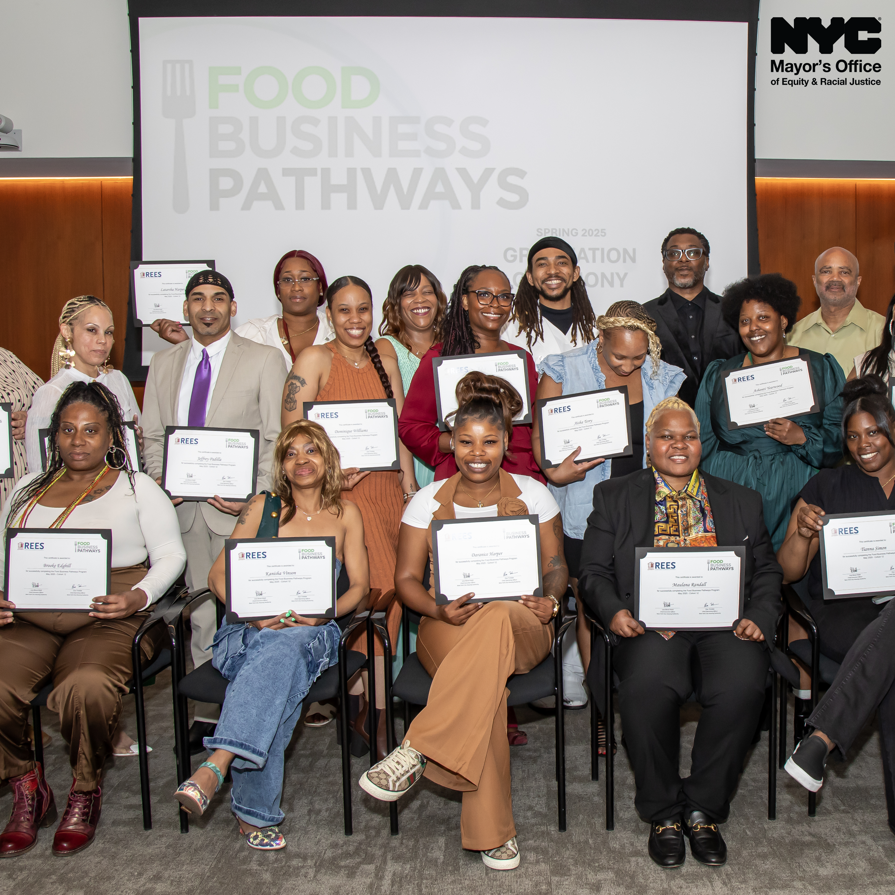 May 12, 2025, The New York City Housing Authority (NYCHA) Food Business Pathways program—supported by the NYC Mayor's Office of Equity & Racial Justice (MOERJ)—reached a major milestone with the graduation of its latest cohort of food entrepreneurs. This transformative initiative empowers NYCHA residents by providing them with the tools, training, and resources needed to grow and scale successful food businesses—creating economic opportunity, independence, and community resilience. During the event, MOERJ Deputy Commissioner Debash Negash delivered remarks celebrating the graduates and highlighting the city’s commitment to advancing racial and economic equity through programs that center community empowerment and inclusive growth.