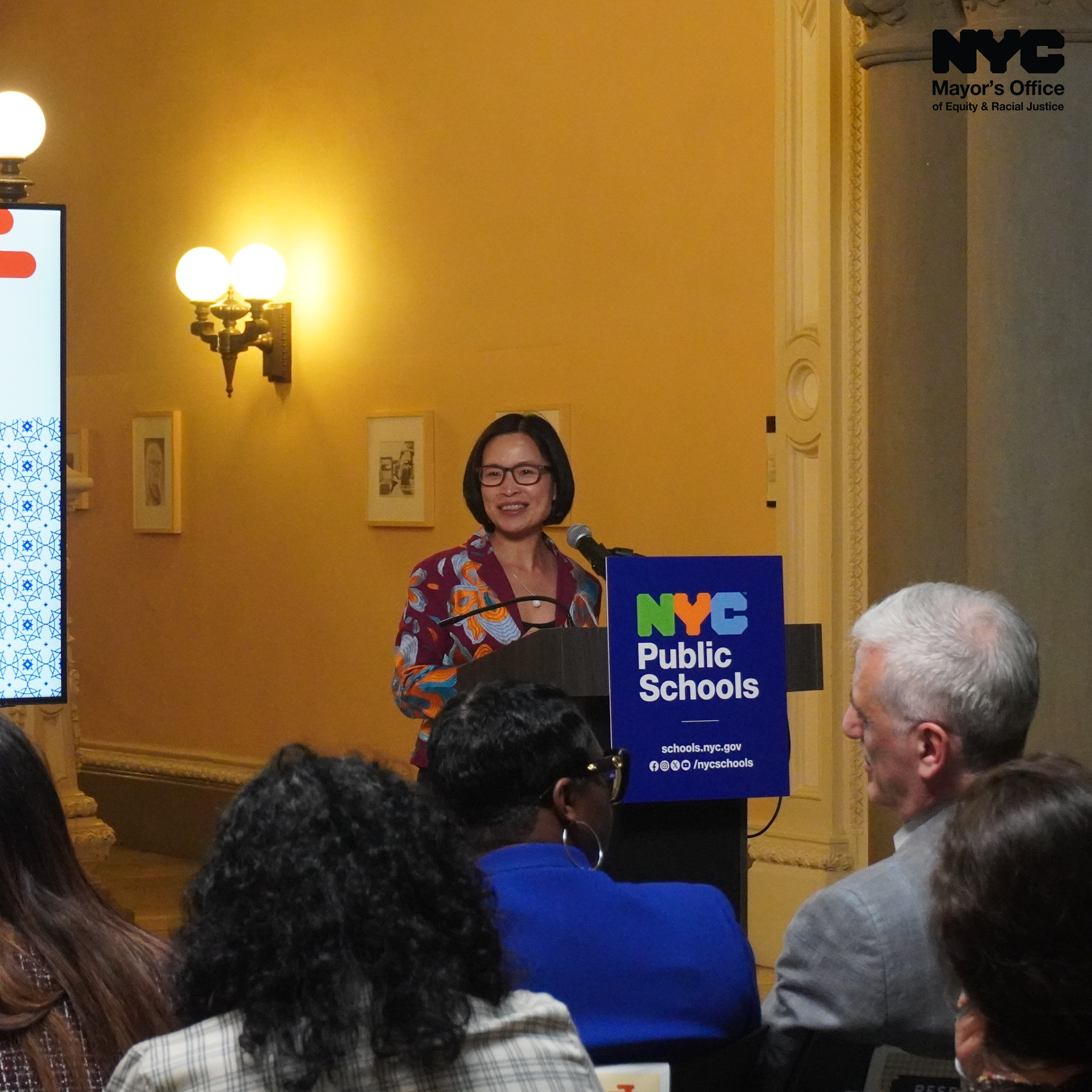 May 21, 2025, The NYC Mayor’s Office of Equity & Racial Justice (MOERJ) was proud to join NYC Public Schools in celebrating Asian American Pacific Islander (AAPI) Heritage Month with cultural performances, student presentations, and inspiring remarks from Chief of Staff Peggy Chan and NYC Public Schools Chancellor Melissa Avilés-Ramos. The event highlighted the power of representation and the richness of the AAPI diaspora in our schools and communities.