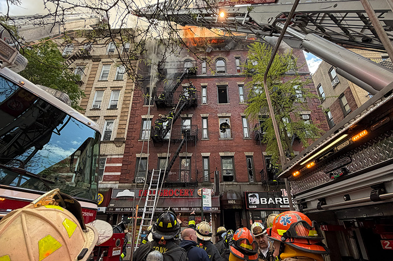 FDNY units operating at a 5-alarm fire in the Bronx on Wednesday, April 21, 2026.