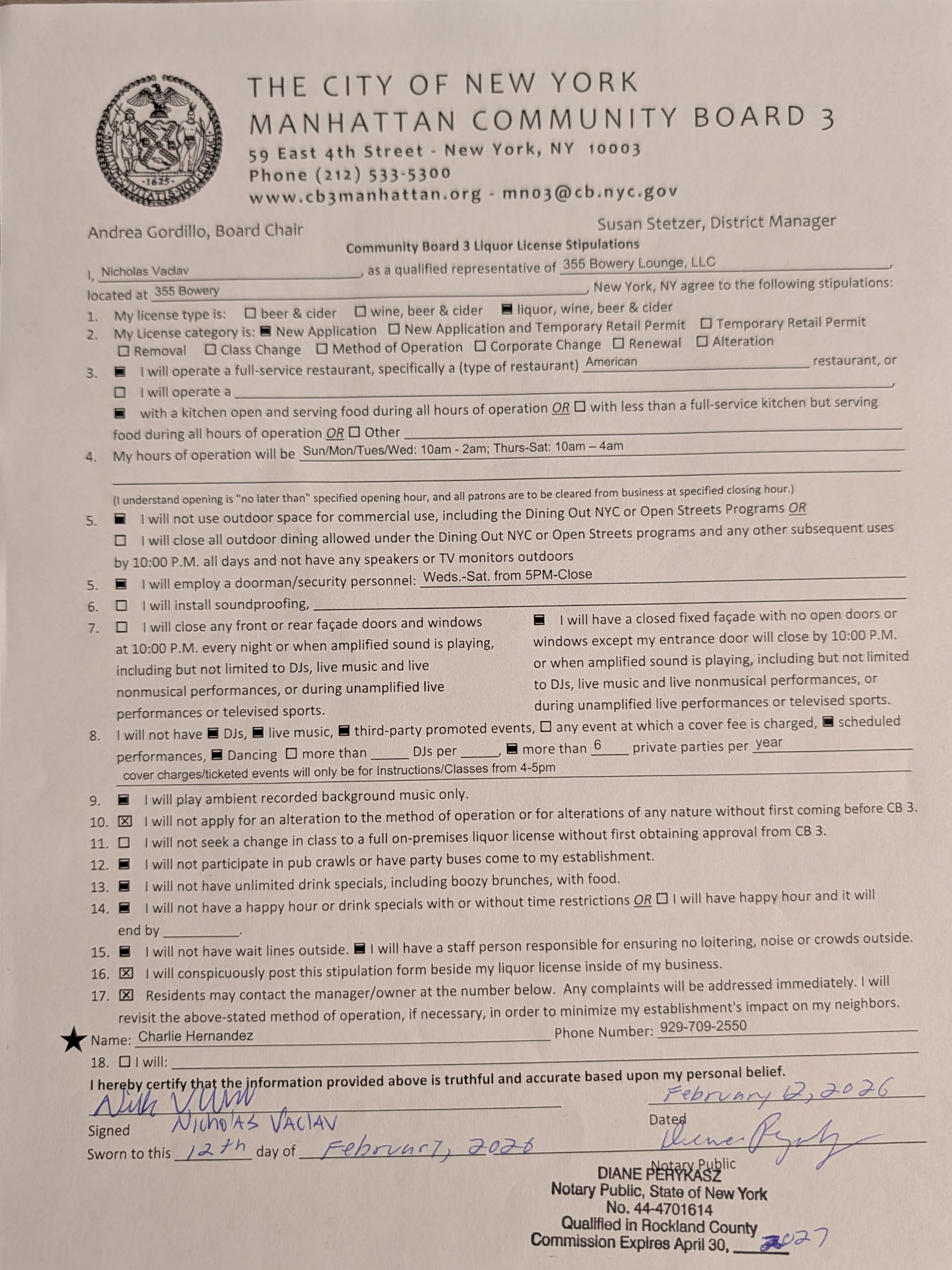 - #18- Twilight Lounge Corp, 110 1st Avenue - Application