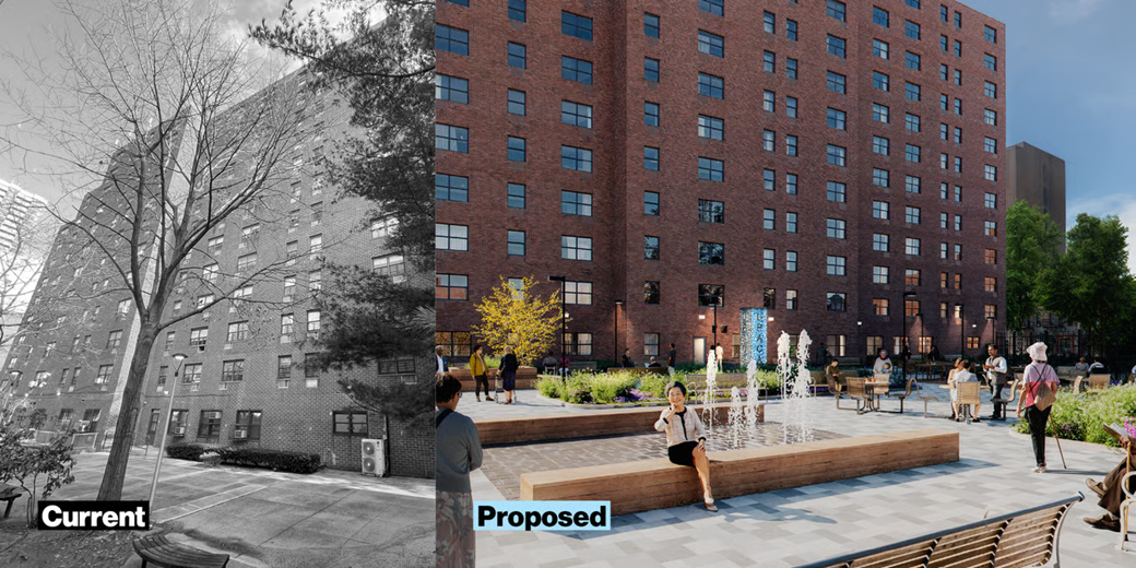 Upgraded lighting, key fob access control measures, intercom systems, secure package hubs and mailboxes, and over 2,000 security cameras will be installed throughout the sites and buildings along with eight new security personnel. Public spaces will be redesigned with new sitting areas, workout equipment, gardening beds, and playgrounds.