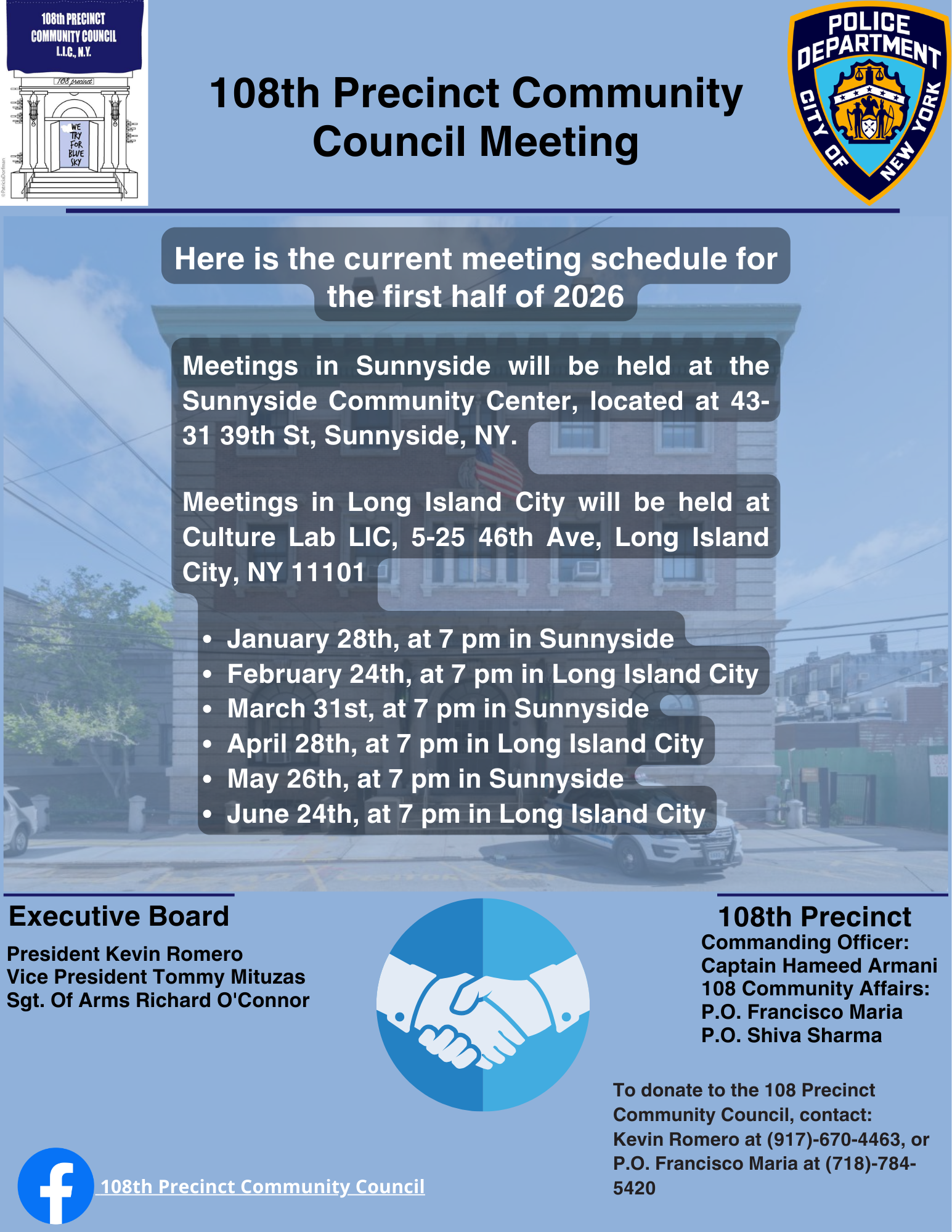 First Half of 2026 Schedule - 108th Precinct Community Council