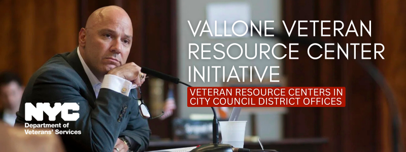 Named in honor of Council Member Paul A. Vallone, whose leadership helped create NYC DVS and expand neighborhood-level access to earned benefits. The Vallone Veteran Resource Center Initiative is a partnership between the NYC Department of Veterans’ Services (DVS), the New York City Council, and the Veterans of Foreign Wars (VFW). Accredited Veterans Service Officers (VSOs) hold recurring office hours in Council District offices so community members can get help with VA disability claims and related benefits—close to home and at no cost.